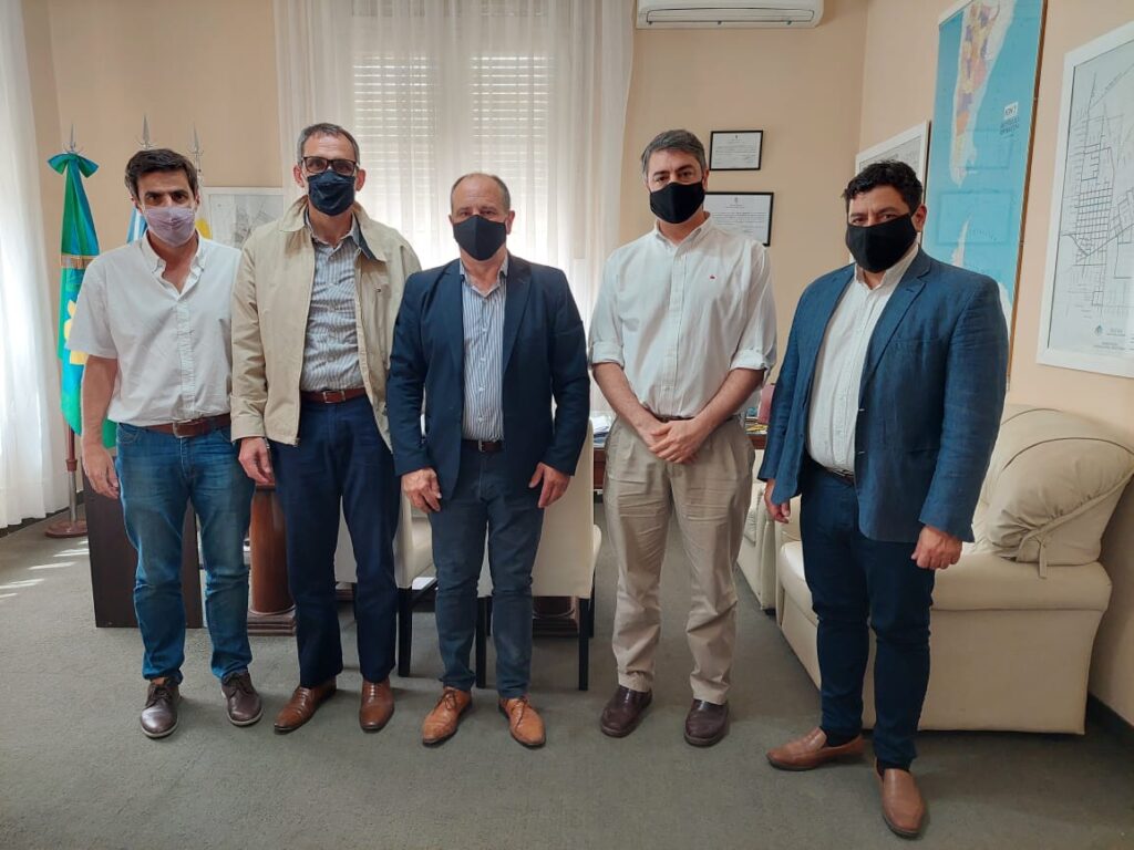 El viernes el intendente Daniel Cappelletti recibió en el despacho municipal al gerente zonal del Banco Santander, Carlos Chiarella; quien asistió acompañado por Diego Del Pino, líder de Proyecto Agro; Claudio García, líder de Negocio Online; y el líder de Sucursal, Matías Rigone.
