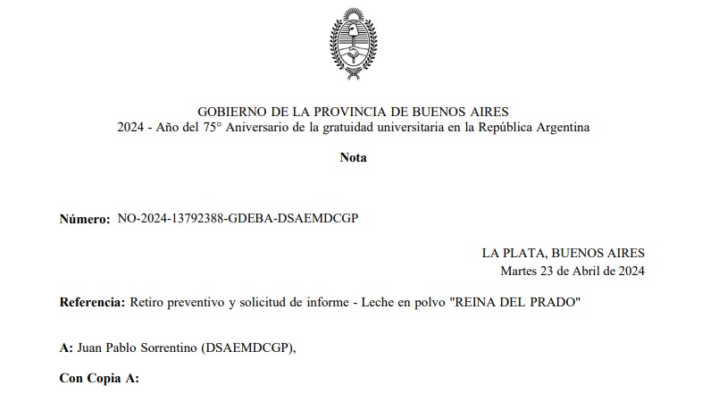 Estimadas familias: Urgente, informamos la NO utilización de Leche en polvo REINA DEL PRADO 400 grs, si les ha llegado con el módulo SAE por favor NO consumir y acercar a la escuela para su reposición