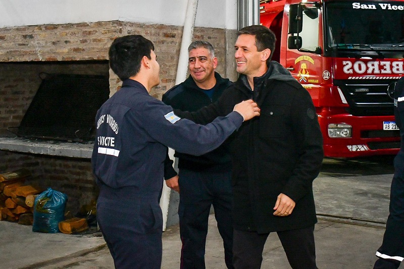 El Intendente Municipal de San Vicente, Nicolás Mantegazza, visitó el cuartel de Bomberos de aquella localidad para asistir a la entrega de la recaudación producida en la Fiesta de la Miel y anunciar la cesión de un lote para que puedan seguir creciendo.