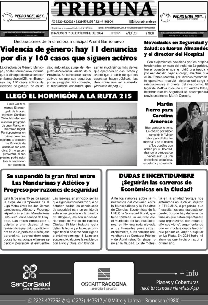 Como todos los fines de semana compartimos los temas destacados del Semanario Tribuna. Tapa de la edición número 3021