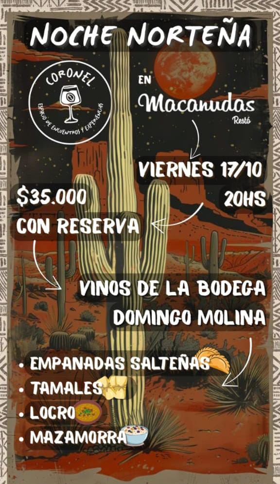 Para este viernes a partir de las 20:00 se organizó una noche llena de sabores y tradición norteña que se llevará a cabo en Macanudas Restó.