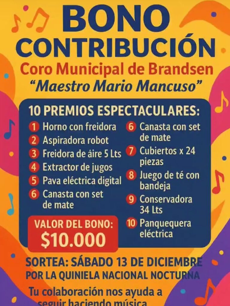 El coro Maestro Mario Mancuso lanzó un bono que sorteará 10 ganadores y lo hará a través de la quiniela nacional nocturna.