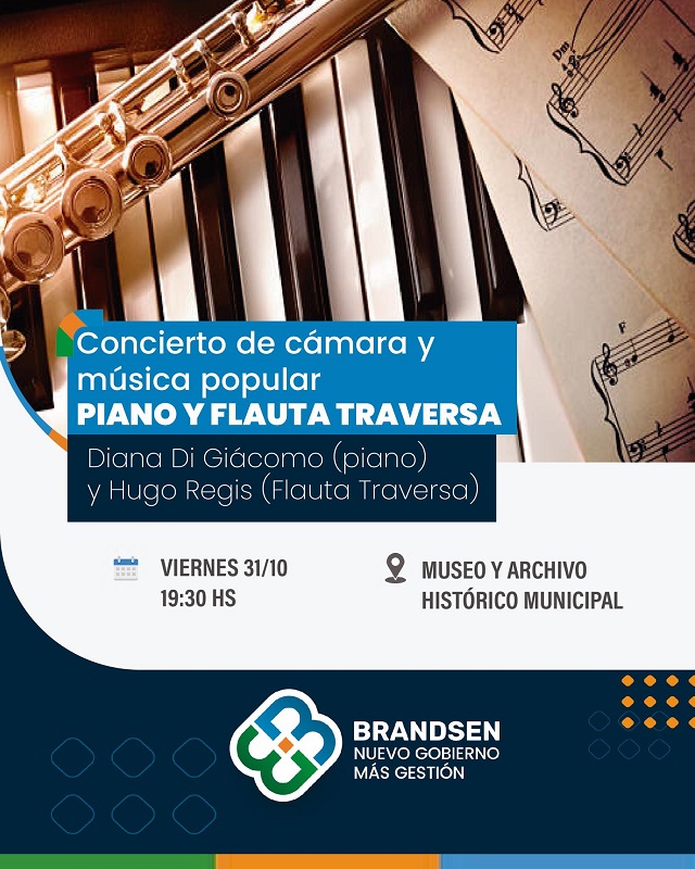 El Museo y Archivo Histórico Municipal de Brandsen se vestirá de gala para recibir un concierto de piano y flauta traversa con un repertorio que fusionará la música de cámara con la popular. La cita es el viernes 31 de octubre a las 19:30 hs.