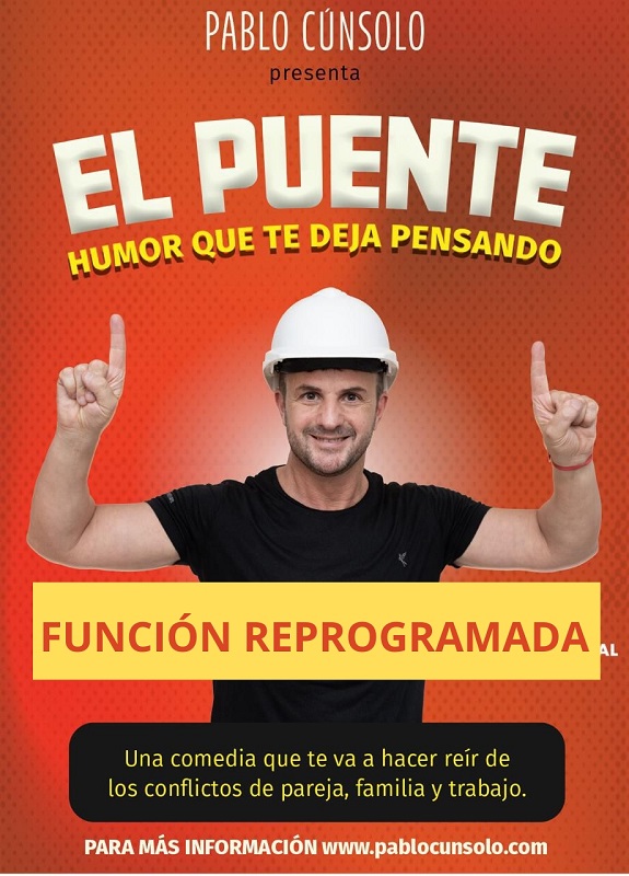 Este viernes 7 de noviembre a las 21, el experto en Neurocomunicación Pablo Cunsolo, presentará en la Sala de Cultura Municipal con su comedia unipersonal El Puente (humor que te deja pensando), que fomenta y divulga de forma divertida la importancia de la comunicación en relaciones personales y laborales.