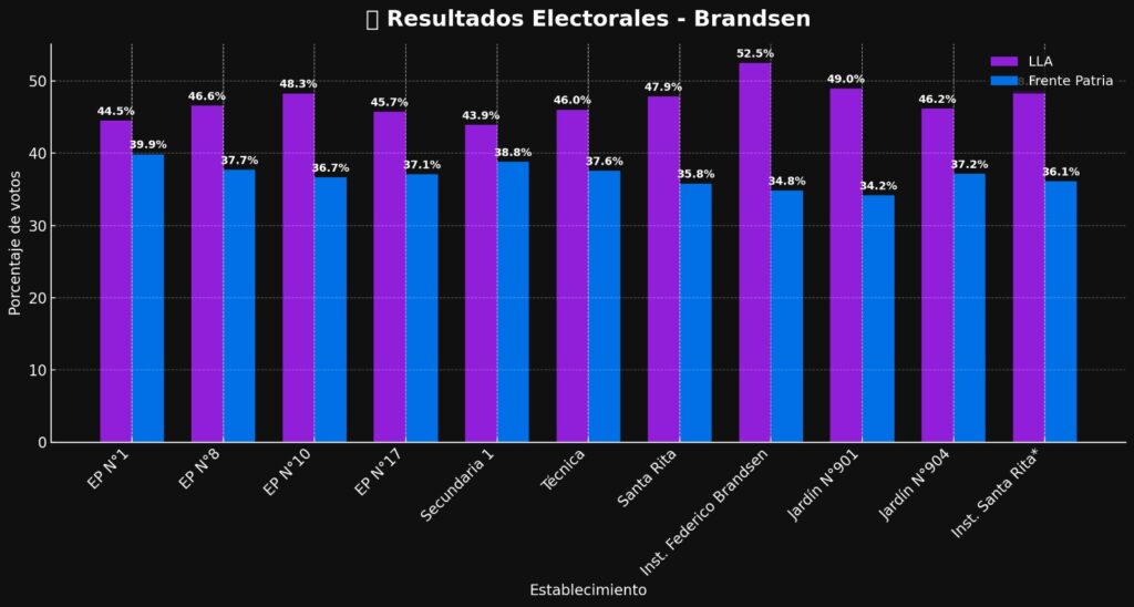 La Alianza La Libertad Avanza se alzó como la fuerza más votada para Diputados Nacionales en el municipio de Brandsen, superando ampliamente a Fuerza Patria -oficialismo a nivel local y provincial-. Los resultados, escrutados al 100% en la mayoría de las mesas, reflejan un apoyo mayoritario a la propuesta del presidente Javier Milei, mejorando significativamente la elección de septiembre pasado.