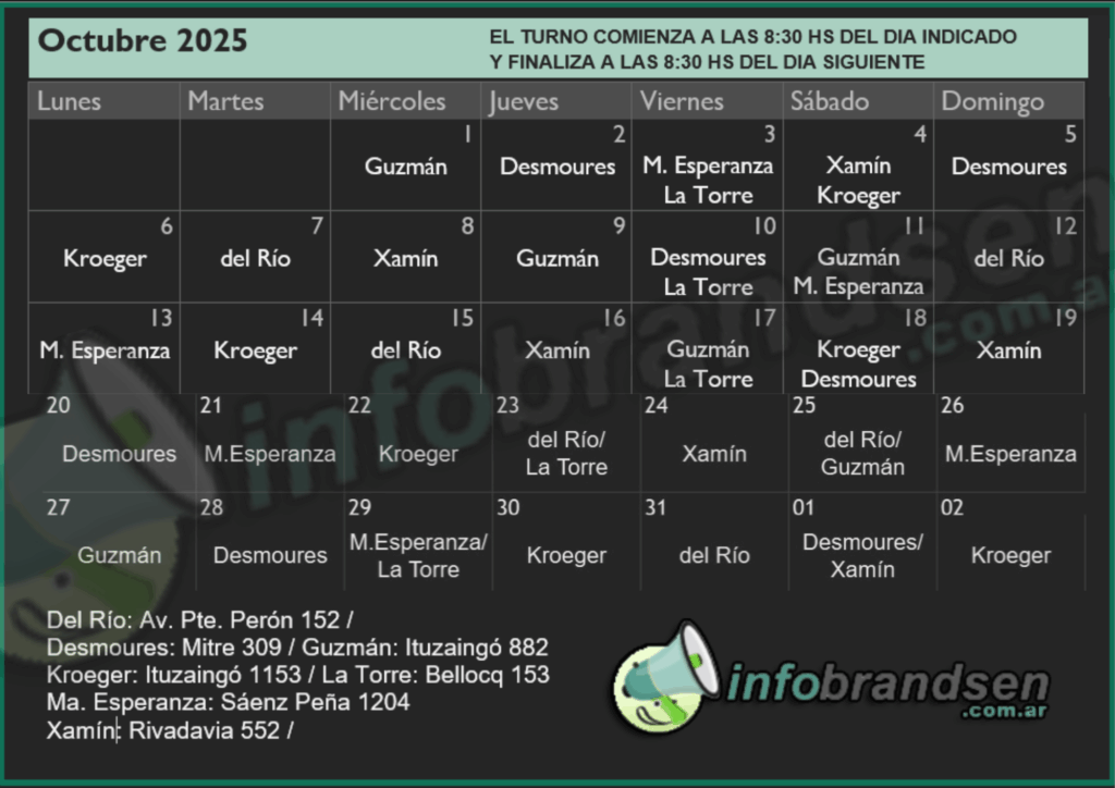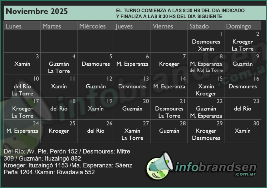 El Círculo Farmacéutico de Brandsen (conformado por las farmacias Del Río, Desmoures, Guzmán, Xamín, Kroeger, María Esperanza y La Torre) nos brinda la siguiente información actualizada.