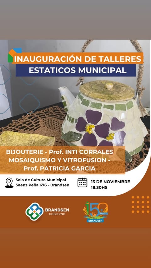 En la Sala de Cultura expondrán creaciones del taller de bijouterie, dictado por la profesora Inti Corrales; y del taller de mosaiquismo y vitrofusión, dictado por la profesora Patricia García.