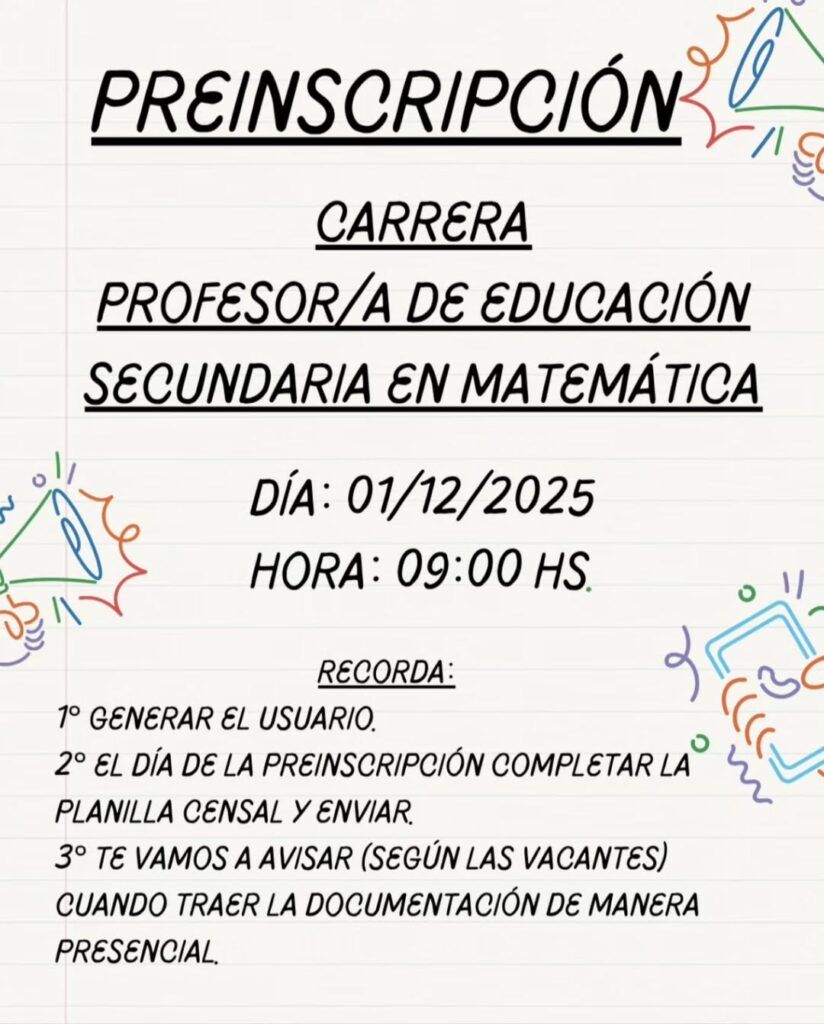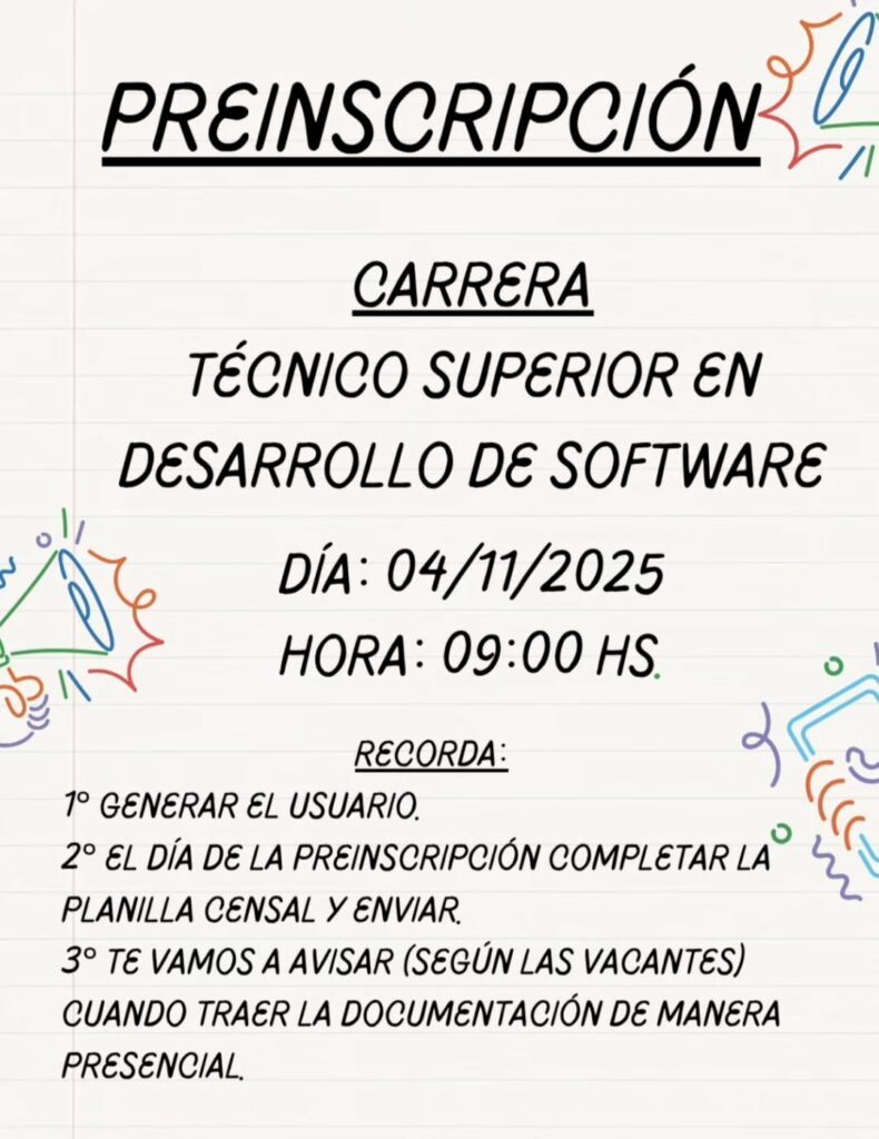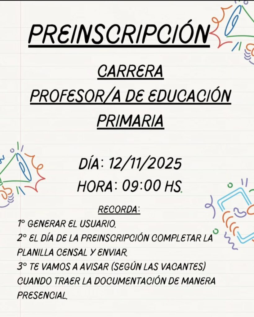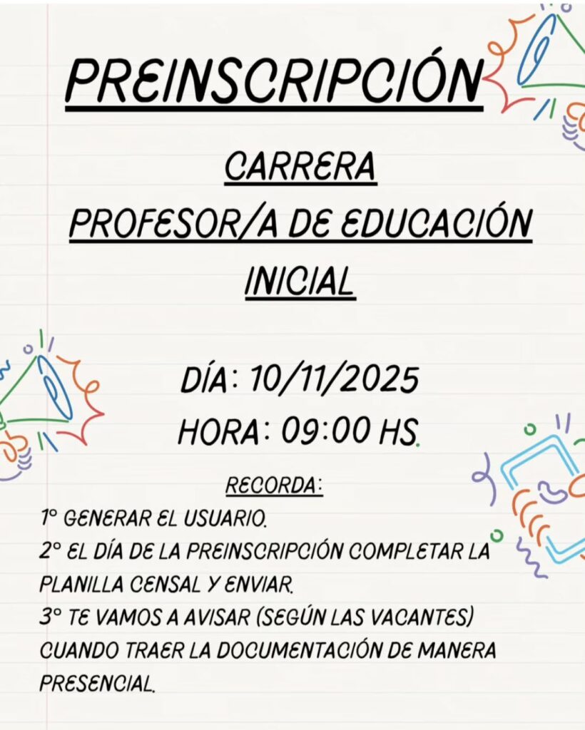 La etapa actual no confirma vacantes, sino que conforma un listado de aspirantes. Luego del 9 de diciembre, el Instituto comenzará a otorgar turnos para la presentación de la documentación obligatoria. “La preinscripción es justamente eso: conformar un listado de aspirantes. Después, según las vacantes, se brindarán turnos para traer la documentación y asegurar el lugar”, precisó la directora.