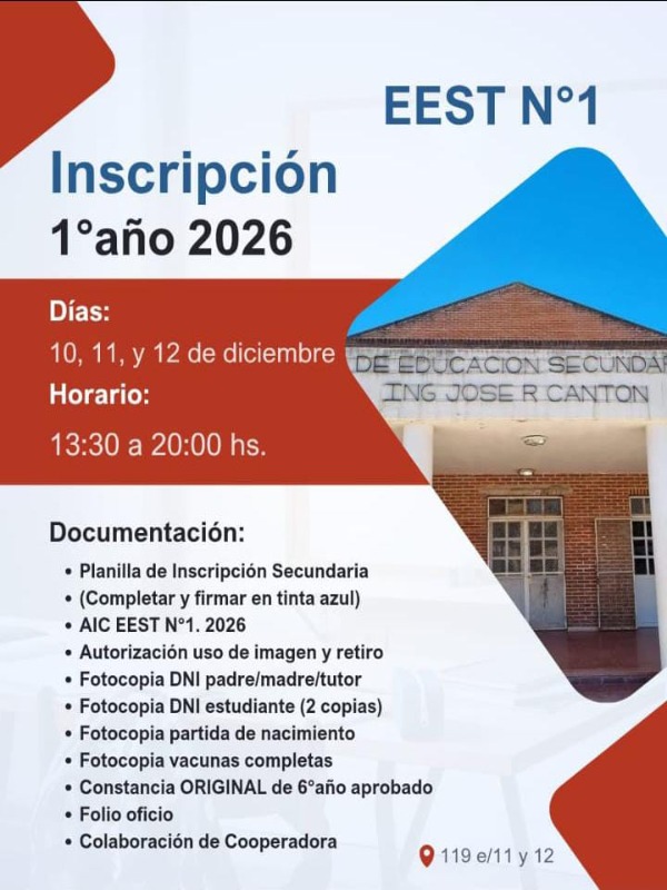 La inscripción para ingresantes 2026 tendrá lugar los días 10, 11 y 12 de diciembre, entre las 13:30 y las 20:00.