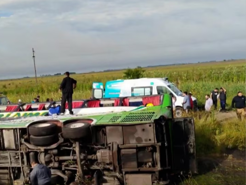 El siniestro ocurrió a la altura del kilómetro 325, a la altura de la localidad de General Pirán, alrededor de las 8. Por motivos que se investigan, el micro sufrió un siniestro y terminó volcado sobre el cantero central con 56 pasajeros a bordo.