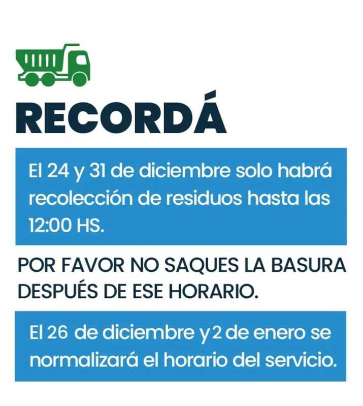 La Municipalidad comunicó como se diagramará la recolección de residuos para el período de la celebración del Año Nuevo y así evitar complicaciones en los distintos puntos de la Ciudad.