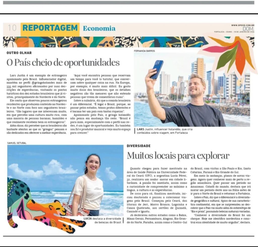 Lucía arribó a Brasil en 2020. Desde entonces no solo completó su maestría, sino que también inició un doctorado, al tiempo que recorrió gran parte del país. Su primer contacto fue con Ceará, explorando destinos emblemáticos como Jericoacoara (Jeri), Morro Branco, Lagoinha y Canoa Quebrada, además de adentrarse en el interior del estado, con visitas a Quixadá, Canindé e Iguatu.