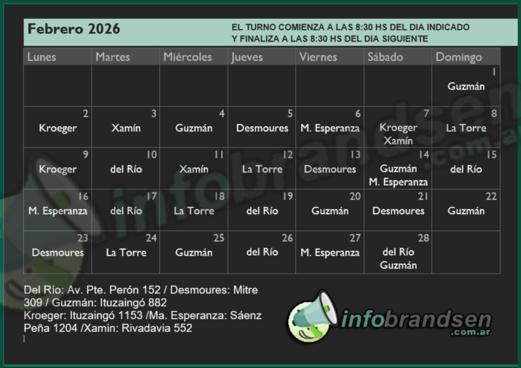 TURNOS DE FEBRERO 2026