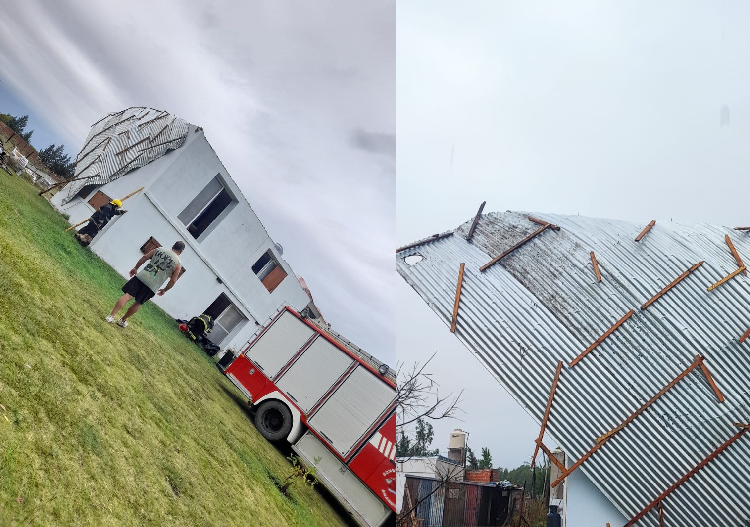 Tras lo ocurrido, vecinos de la zona colaboraron rápidamente para retirar parte del techo que había quedado colgando. En el lugar también trabajaron Bomberos Voluntarios, personal policial y Desarrollo Social.