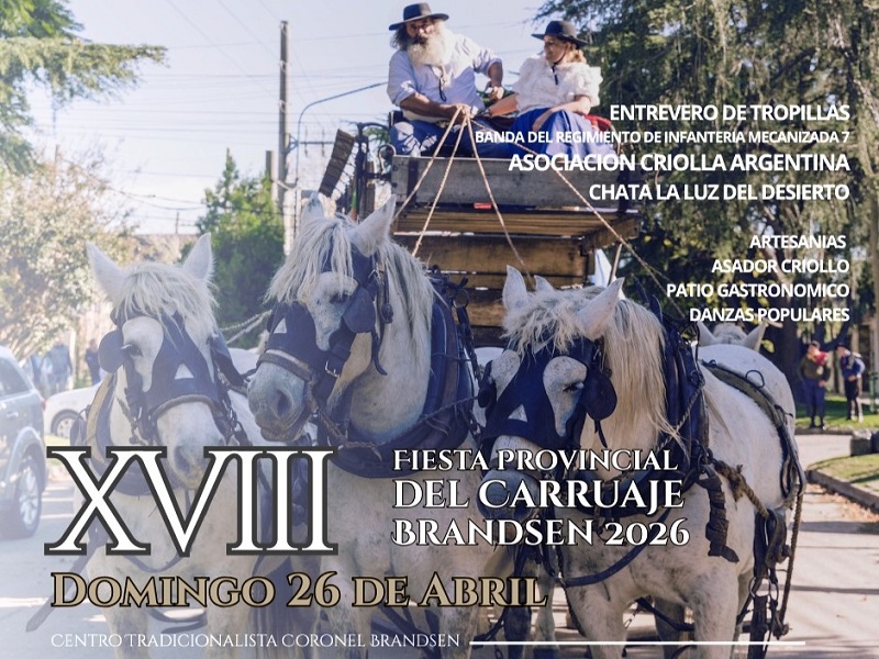 La Ciudad se vestirá de tradición el próximo domingo 26 de abril con la llegada de la XVIII Fiesta Provincial del Carruaje, un evento que busca celebrar y mantener vivas las raíces gauchescas de la región. Organizada en conjunto por el Centro Tradicionalista Coronel Brandsen y la Comuna, la jornada promete actividades para toda la familia.