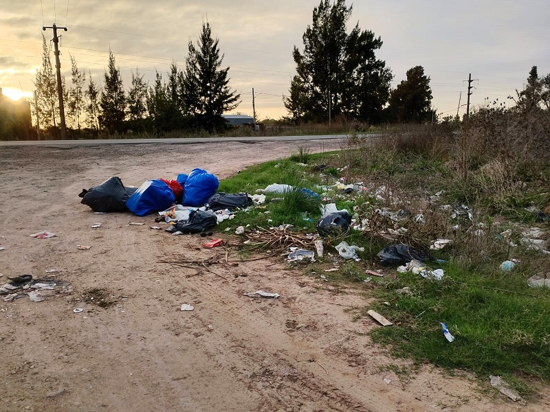 Las imágenes enviadas muestran bolsas de basura acumuladas a la vera del camino, generando un foco de contaminación que preocupa tanto a familias como a docentes que transitan diariamente por el lugar.